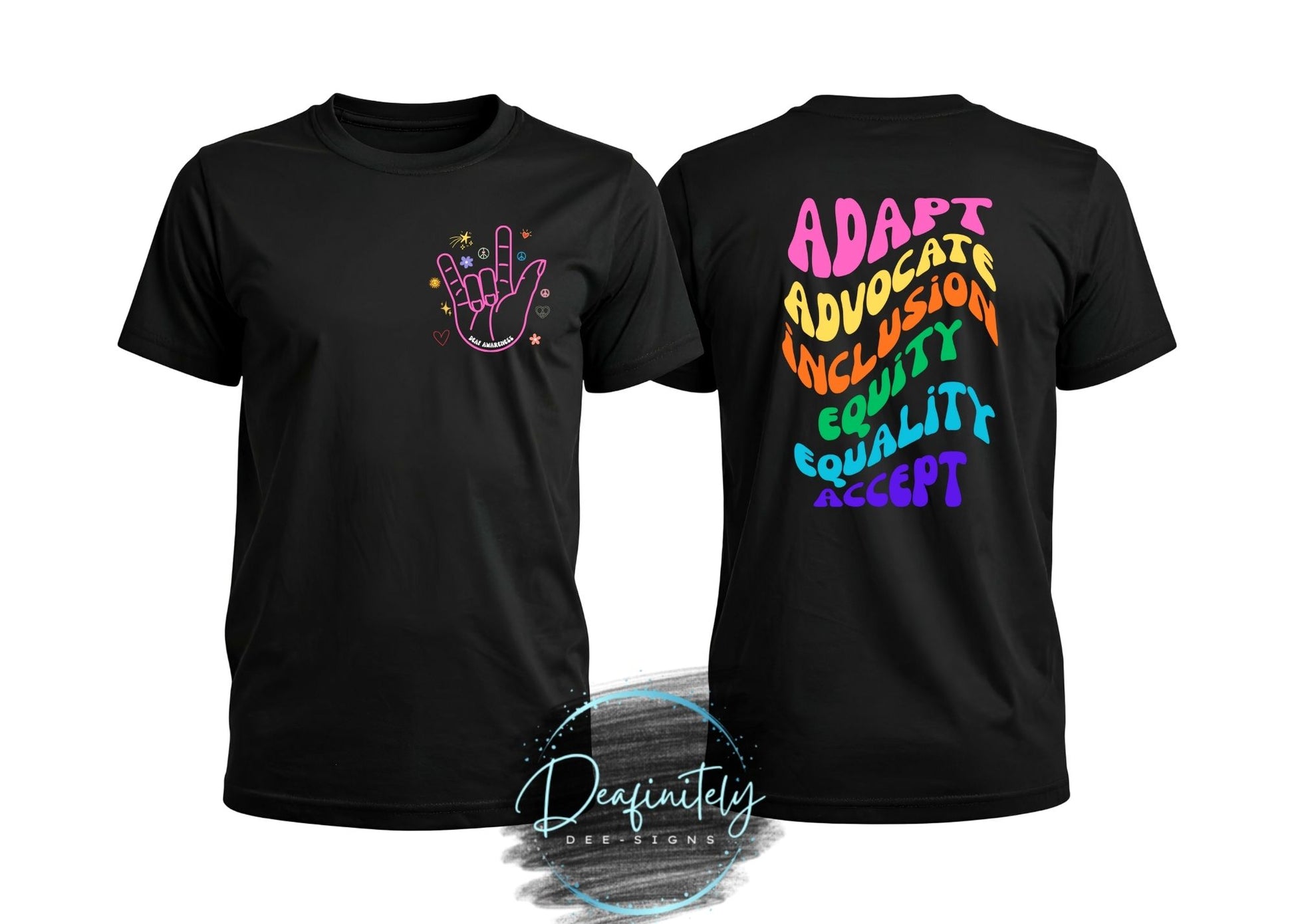 This 100% cotton T-shirt was thoughtfully designed to celebrate Deaf Awareness and the beauty of communication beyond words.